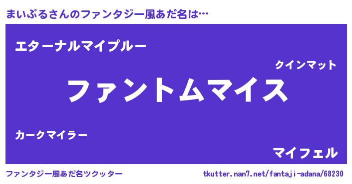 | 男性向けラノベタイトル風あだ名 | 『まいぷるの嫁は女の子じゃないと思った?』 |