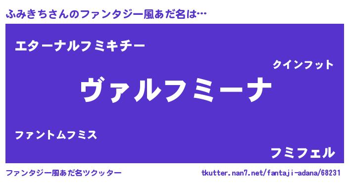 | 男性向けラノベタイトル風あだ名 | 『魔弾の王とふみきち』『ふみきちの憂鬱』 |