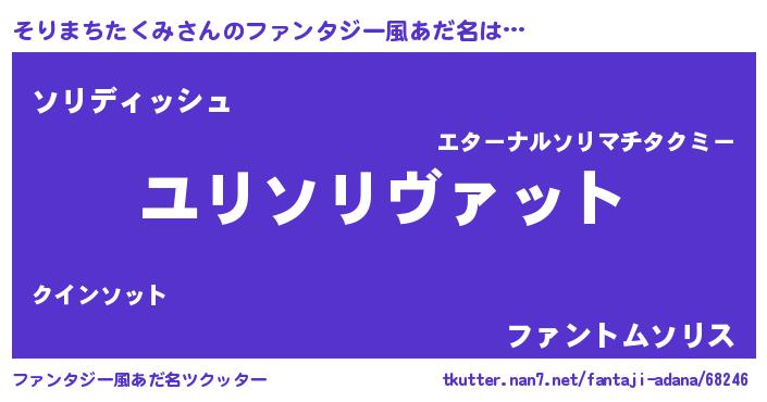 | 可愛いあだ名 | 『そりぷりん』『そりまちたくみママ』 |