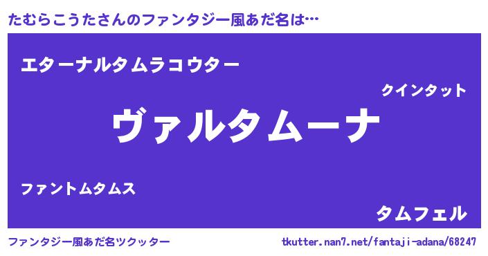 | ヒーロー風カッコイイあだ名 | 『仮面タムダー』『スーパータムラコウタ』 |