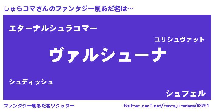 | 男性向けラノベタイトル風あだ名 | 『魔弾の王としゅらコマ』 |