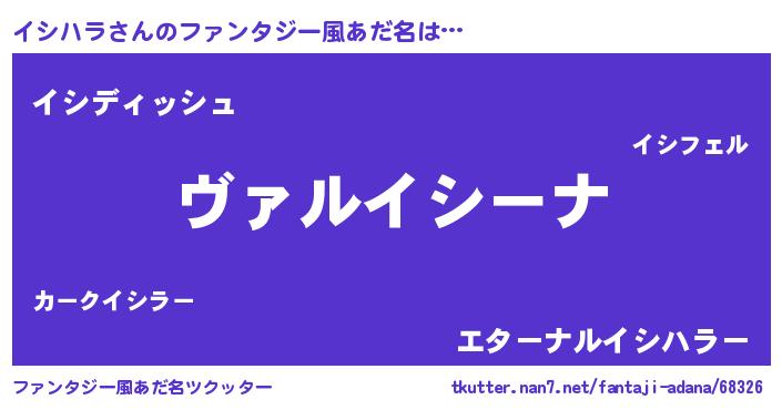 | 男性向けラノベタイトル風あだ名 | 『この素晴らしい世界にイシハラを!』 |