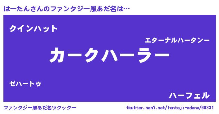 | 男性向けラノベタイトル風あだ名 | 『はーたんに滅ぼされるだけの簡単なお仕事です』 |