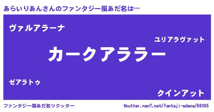 | ヒーロー風カッコイイあだ名 | 『仮面アラダー』『ネオアライリアン』 |