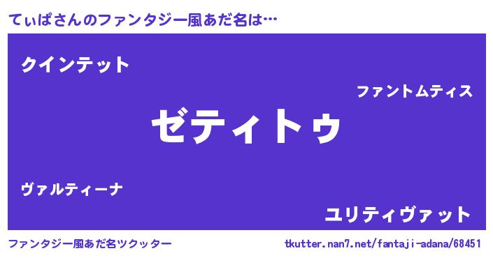 | 男性向けラノベタイトル風あだ名 | 『魔法科高校のてぃぱ』 |