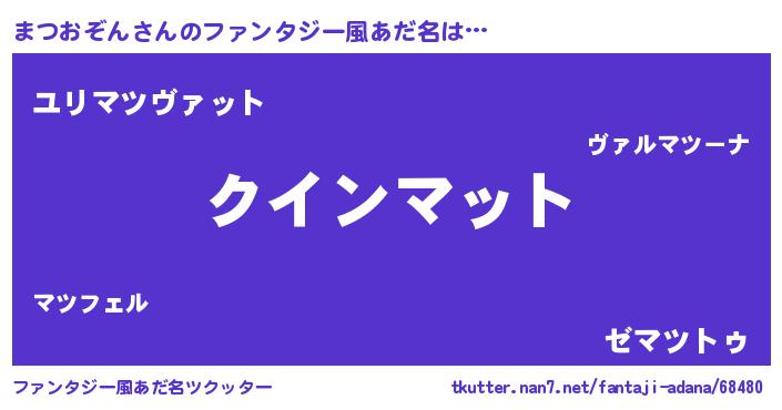 | 男性向けラノベタイトル風あだ名 | 『おまえをオタクにしてやるから、俺をまつおぞんにしてくれ! 』 |