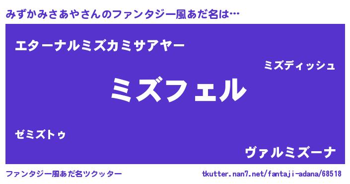 | 男性向けラノベタイトル風あだ名 | 『ミズカミサアヤアートオンライン』 |