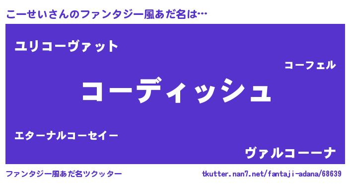 | ポケモン風あだ名 | 『ゼニコー』『コーゴンZ』『コーーイ』 |