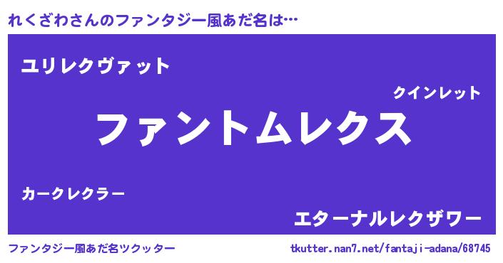 | 意味不明あだ名 | 『とにかく怪しいれくざわ』 |