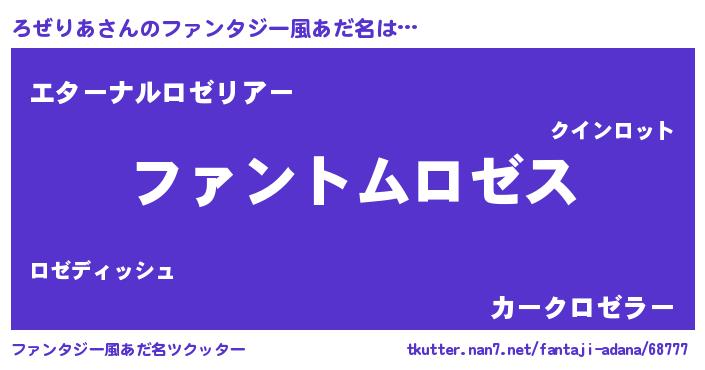 | 男性向けラノベタイトル風あだ名 | 『ろぜりあに滅ぼされるだけの簡単なお仕事です』 |