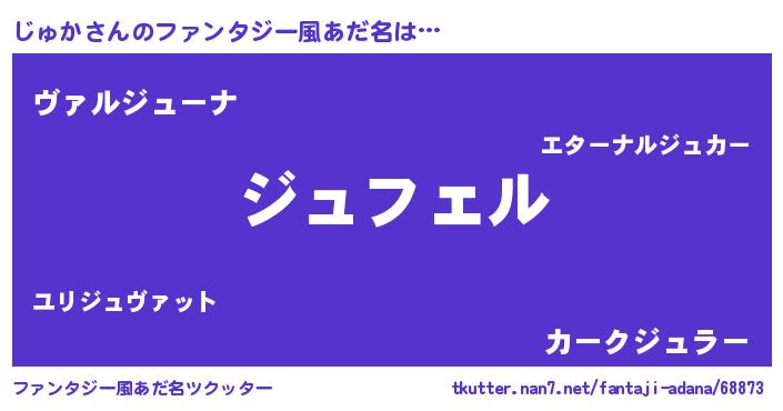 | 男性向けラノベタイトル風あだ名 | 『じゅかの憂鬱』『魔弾の王とじゅか』 |