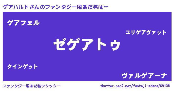 | 女子向けラノベタイトル風あだ名 | 『ゲアハルトなんてお断りですっ。』 |