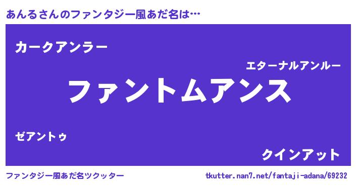| ヒーロー風カッコイイあだ名 | 『魔戒騎士アン』『正義の使者あんる』 |