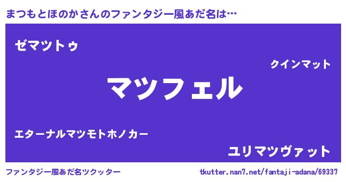 | 男性向けラノベタイトル風あだ名 | 『マツモトホノカアートオンライン』 |