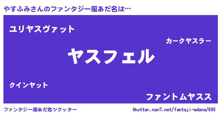 | 男性向けラノベタイトル風あだ名 | 『ヤスフミアートオンライン』 |