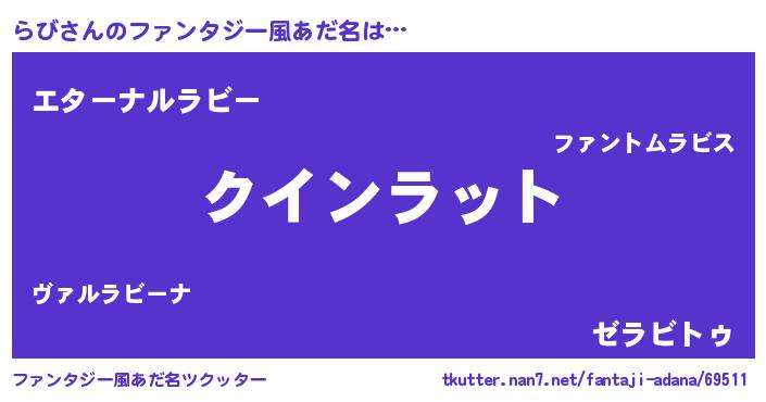 | 料理風あだ名 | 『栗とらびのマフィン』『らびのトマト煮』 |