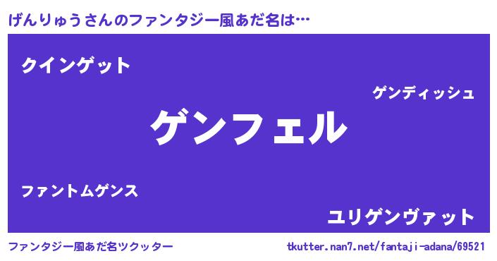 | 男性向けラノベタイトル風あだ名 | 『げんりゅうの憂鬱』 |