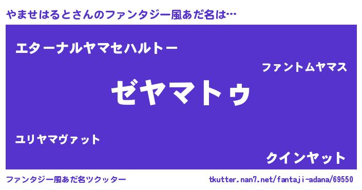 | 男性向けラノベタイトル風あだ名 | 『Re:やませはるとから始める異世界生活』 |