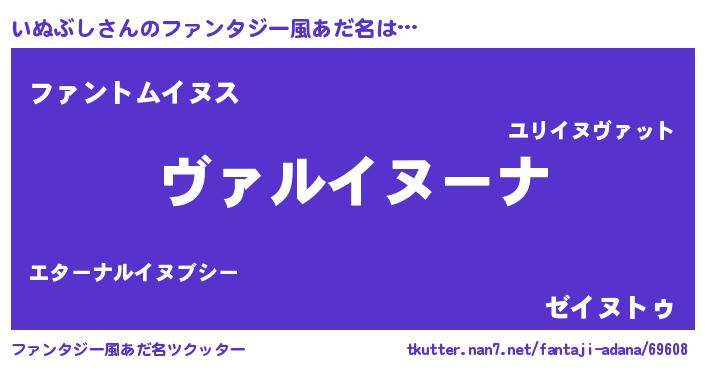 | ポケモン風あだ名 | 『イーヌイ』『ヒイヌブシ』 |