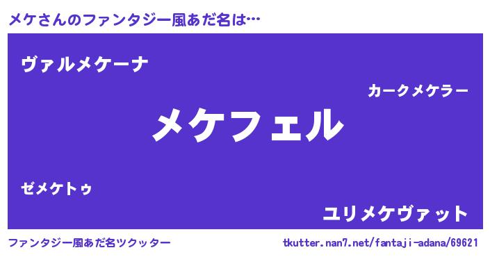 | 男性向けラノベタイトル風あだ名 | 『メケの憂鬱』『魔弾の王とメケ』 |