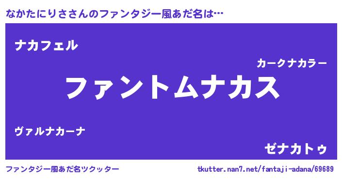 | ヒーロー風カッコイイあだ名 | 『幻影騎士ナカ』『スーパーナカタニリサ』 |