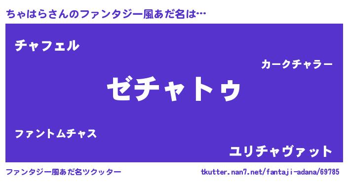 | 男性向けラノベタイトル風あだ名 | 『Re:ちゃはらから始める異世界生活』 |