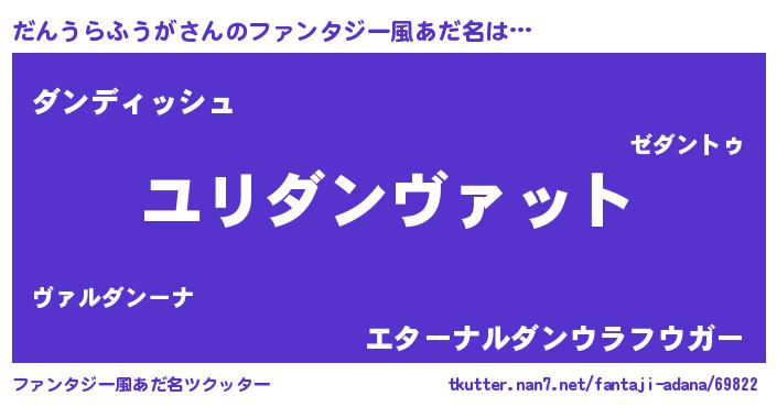 | 男性向けラノベタイトル風あだ名 | 『だんうらふうが~年齢イコール彼女いない歴の魔法使い~』 |