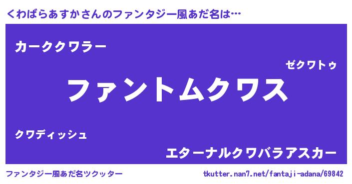 | 女子向けラノベタイトル風あだ名 | 『くわばらあすかの卵を拾いまして』 |