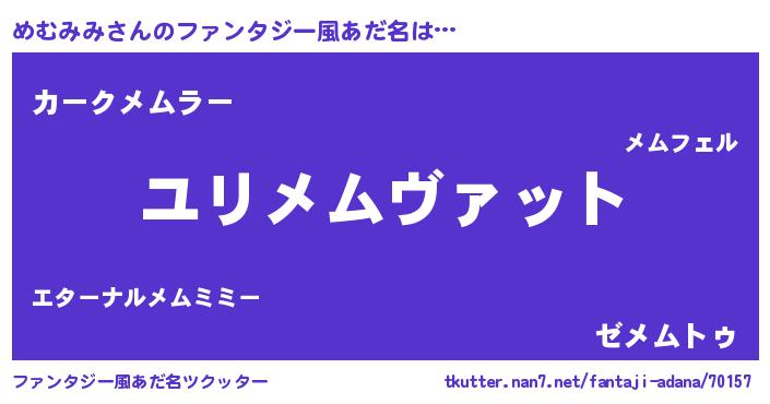 | 男性向けラノベタイトル風あだ名 | 『めむみみ~年齢イコール彼女いない歴の魔法使い~』 |