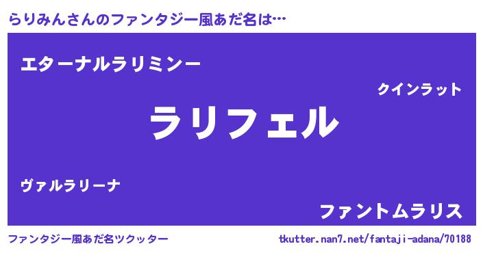 | ヘコむあだ名 | 『らりにゅー』『酢こんぶ』『らりお』 |