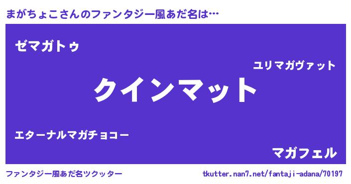 | 男性向けラノベタイトル風あだ名 | 『ノーゲーム・ノーマガチョコ』 |