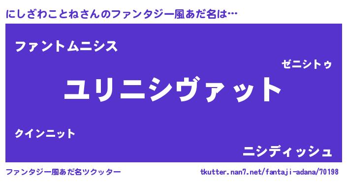 | 男性向けラノベタイトル風あだ名 | 『転生したらにしざわことねだった件』 |