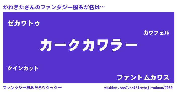 | ヒーロー風カッコイイあだ名 | 『超時空戦士カワキタ』『魔戒騎士カワ』 |