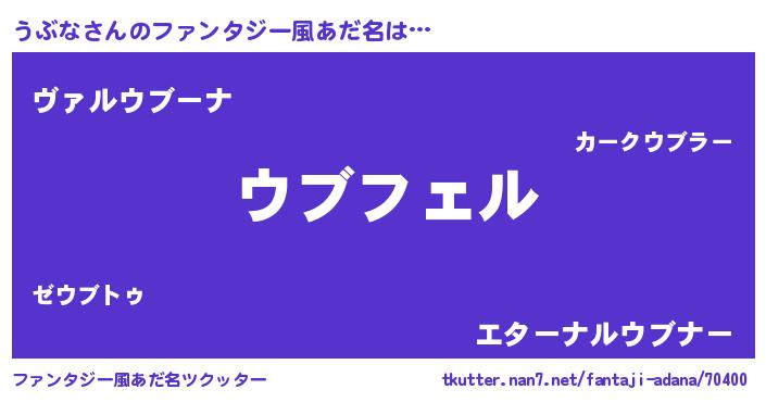 | ヒーロー風カッコイイあだ名 | 『スーパーウブナ』『仮面ウブダー』 |