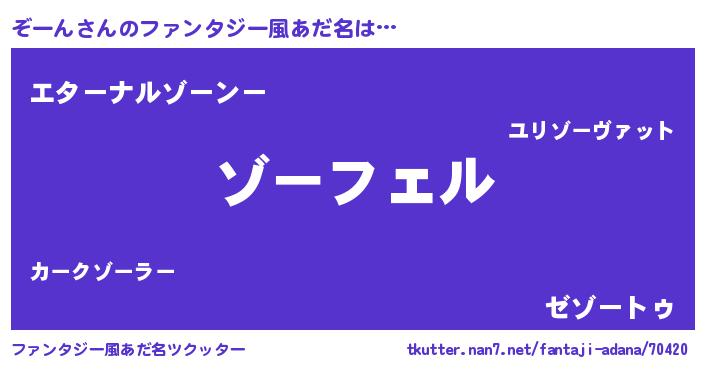 | 女子向けラノベタイトル風あだ名 | 『ぞーん姫と円卓の騎士』『闇のぞーん』 |