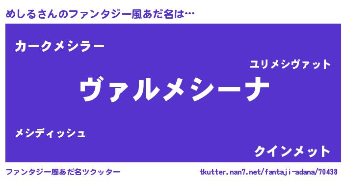 | 男性向けラノベタイトル風あだ名 | 『この素晴らしい世界にめしるを!』 |