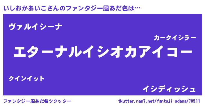 | 女子向けラノベタイトル風あだ名 | 『いしおかあいこの雑貨屋さん』 |