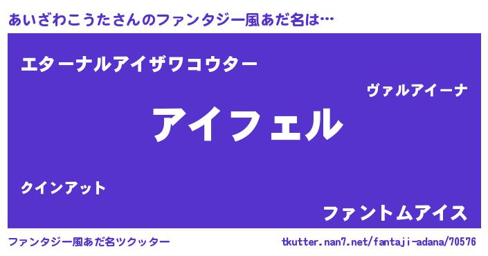 | 男性向けラノベタイトル風あだ名 | 『アイザワコウタアートオンライン』 |