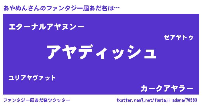 | 男性向けラノベタイトル風あだ名 | 『あやぬんという概念が存在しない退屈な世界 』 |