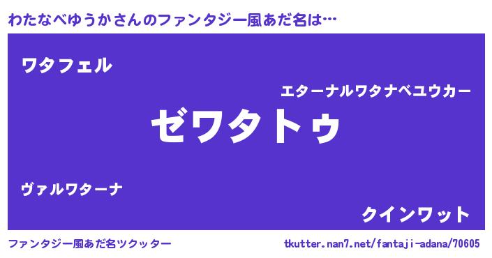 | 男性向けラノベタイトル風あだ名 | 『Re:わたなべゆうかから始める異世界生活』 |