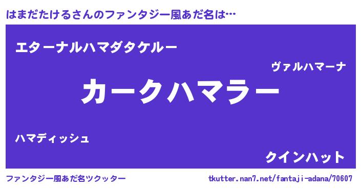 | 意味不明あだ名 | 『はまだたけるフォーエバー』 |