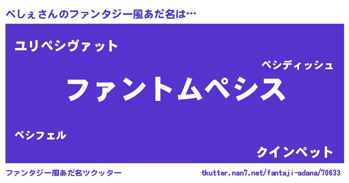| 男性向けラノベタイトル風あだ名 | 『ダンジョンにぺしぇを求めるのは間違っているだろうか』 |