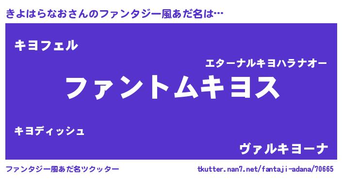 | 男性向けラノベタイトル風あだ名 | 『ダンジョンにきよはらなおを求めるのは間違っているだろうか』 |