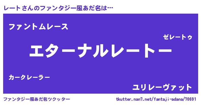 | 意味不明あだ名 | 『レートフォーエバー』『自称レート』 |