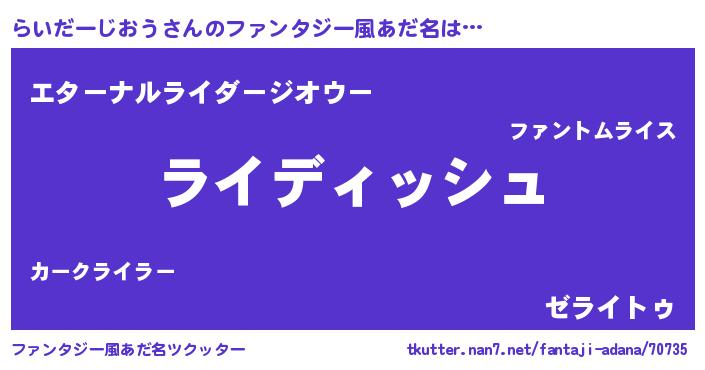 | 意味不明あだ名 | 『永久保存らいだーじおう』 |
