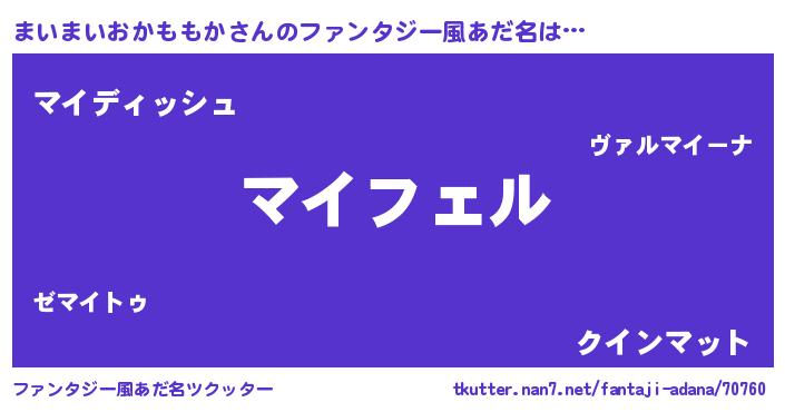 | 男性向けラノベタイトル風あだ名 | 『まいまいおかももかの憂鬱』 |