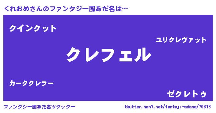 | 男性向けラノベタイトル風あだ名 | 『くれおめに滅ぼされるだけの簡単なお仕事です』 |