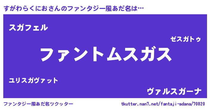 | 男性向けラノベタイトル風あだ名 | 『すがわらくにおに滅ぼされるだけの簡単なお仕事です』 |