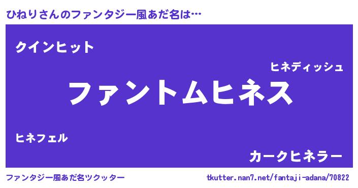 | ヒーロー風カッコイイあだ名 | 『暗黒騎士ヒネ』『慈愛の使者ひねり』 |