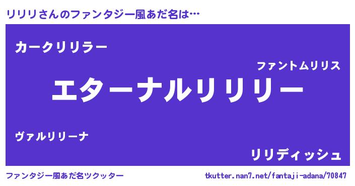 | 意味不明あだ名 | 『リリリフォーエバー』『永久保存リリリ』 |